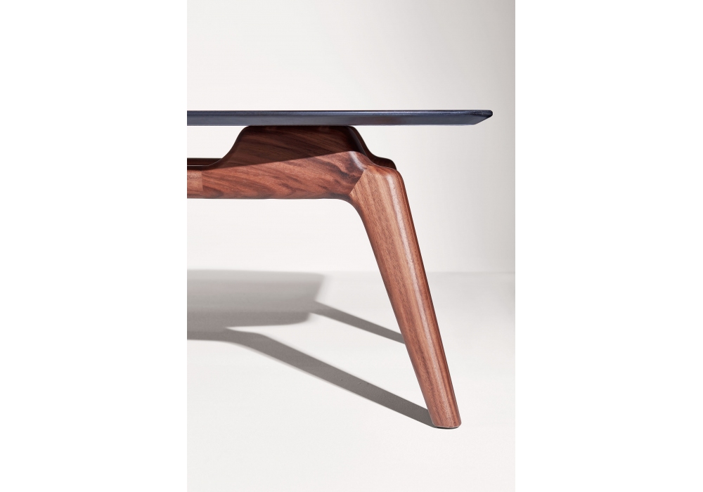 Mesa Mixta Trio designed by Andrés Martinez for Nomon is a coffee table with walnut legs and top made up of three slabs in walnut, marble or in the combination of walnut/marble. The top is available in 2 sizes.