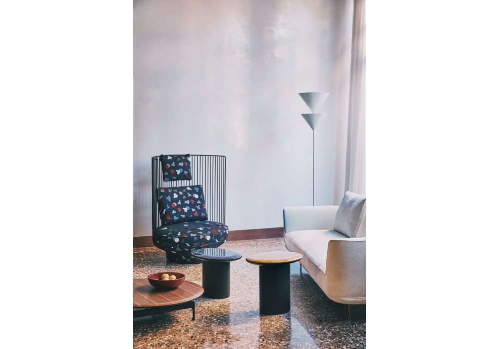 Antilles designed by Wittmann and Nichetto for Wittmann is a coffee table with top in granite or marble in different finishes. Available in four sizes.