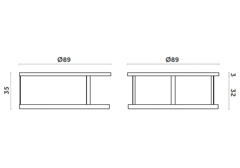 | Dimensions | • Ø 43 x H 51 cm; • Ø 89 x H 35 cm |