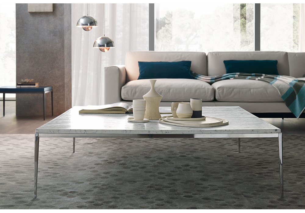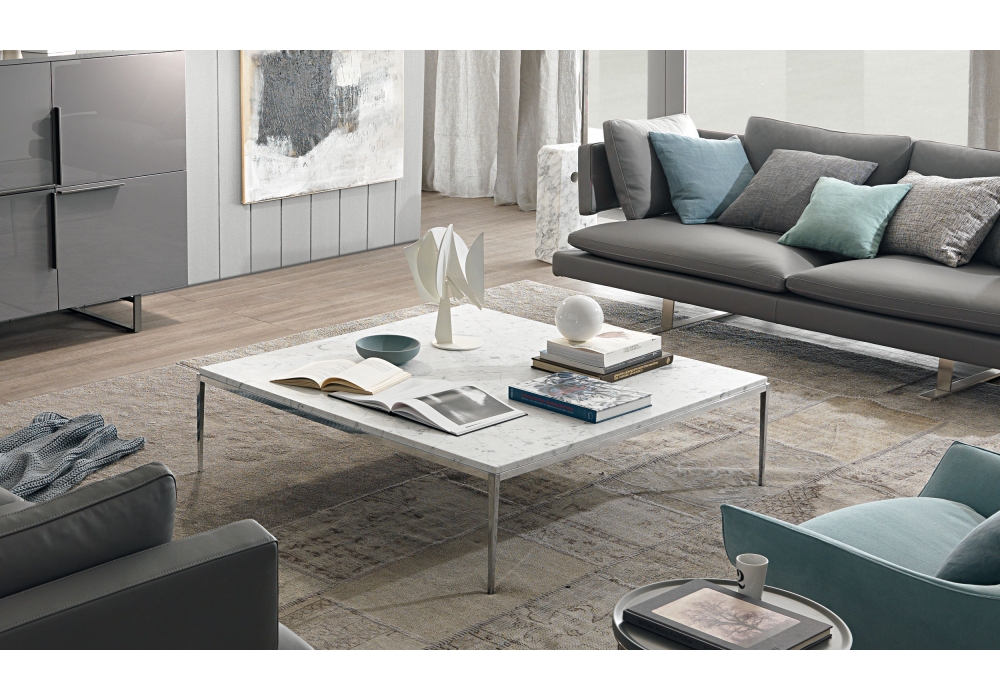 Kessler designed by Mauro Lipparini for MisuraEmme is a collection of coffee tables made with base in painted metal in gunmetal finish and top in wood, matt or glossy lacquer, marble or transparent glass. Available in different finishes and dimensions.