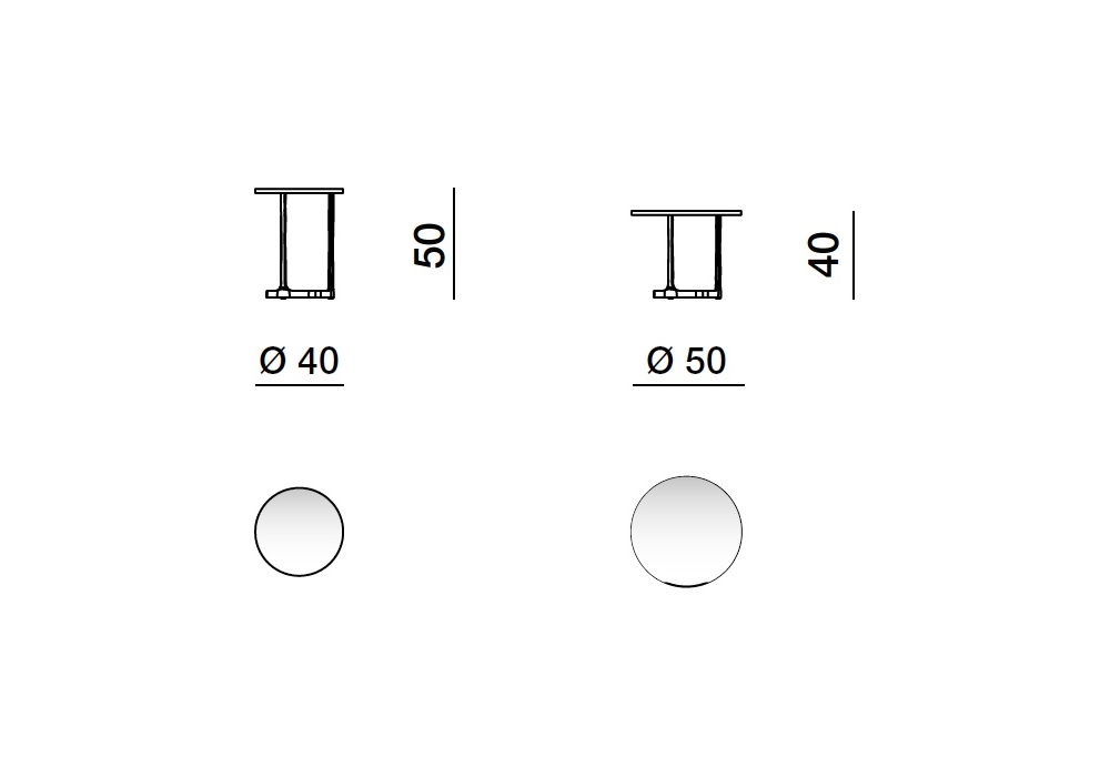 | Dimensions | Ø 40 x H 50 cm; Ø 50 x H 40 cm. |