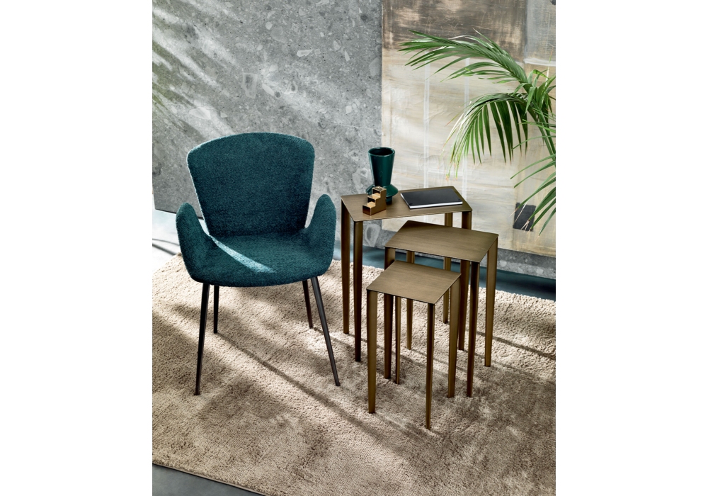 Tris designed by Riflessi is a coffee table set of 3 with structure and top in painted or hand brushed metal.