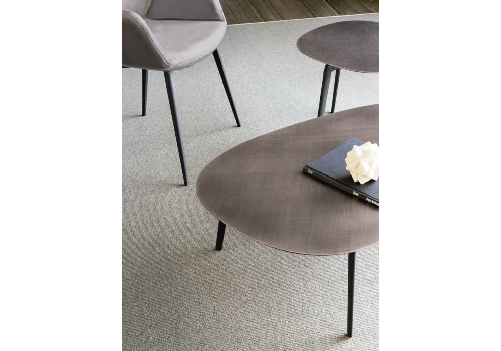 Coffee designed by Riflessi is a coffee table with graphite painted metal structure and metal top in hand-brushed Tibetan finish with streaked and crossed effect or covered in leather. Available in different dimensions.