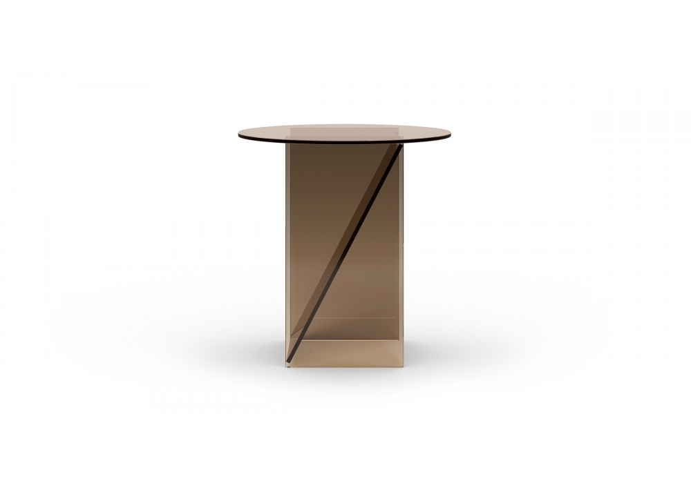 Kaisa designed by Annabelle Klute for E15 is a side table with structure in black, mirrored and brown glass. Available in different sizes.