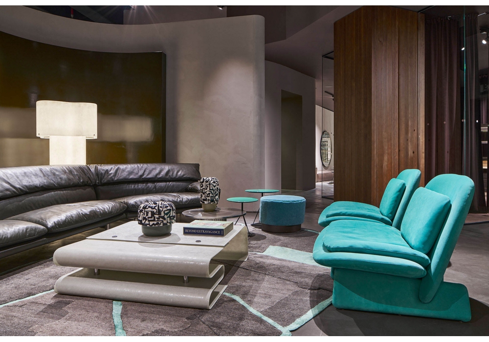 Dune designed by Draga & Aurel for Baxter is a coffee table with frame in fiberglass. Satin brass or chromium-plated metal details. Available in 2 sizes.