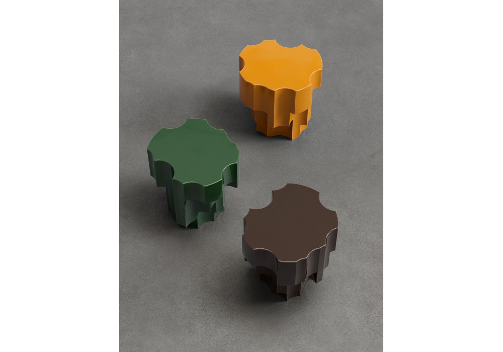 Altar designed by EWE Studio for Tacchini is a coffee table with structure in ceramic, cement or cedar, in different finishes.