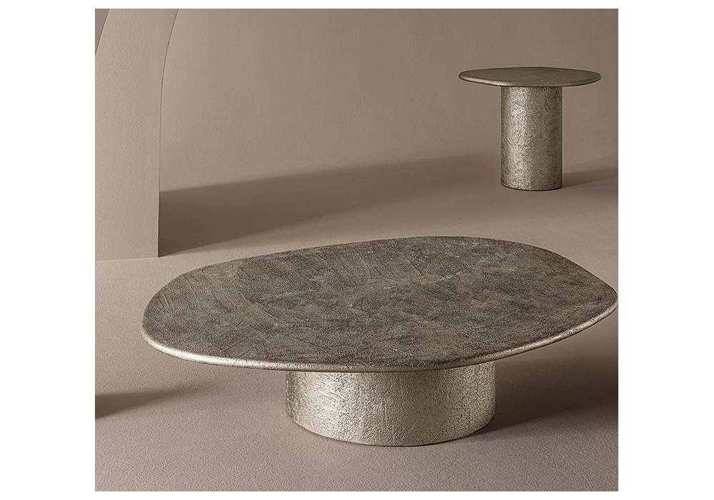 Atollo designed by Design CSM for Casamilano is a coffee table with hand-crafted material finish, with natural earths and liquid metal pigments. Each piece is unique and different from the other as it is made through an artistic process. The imperfections are due to manual processing, which makes each piece unique. Structure in poplar plywood.