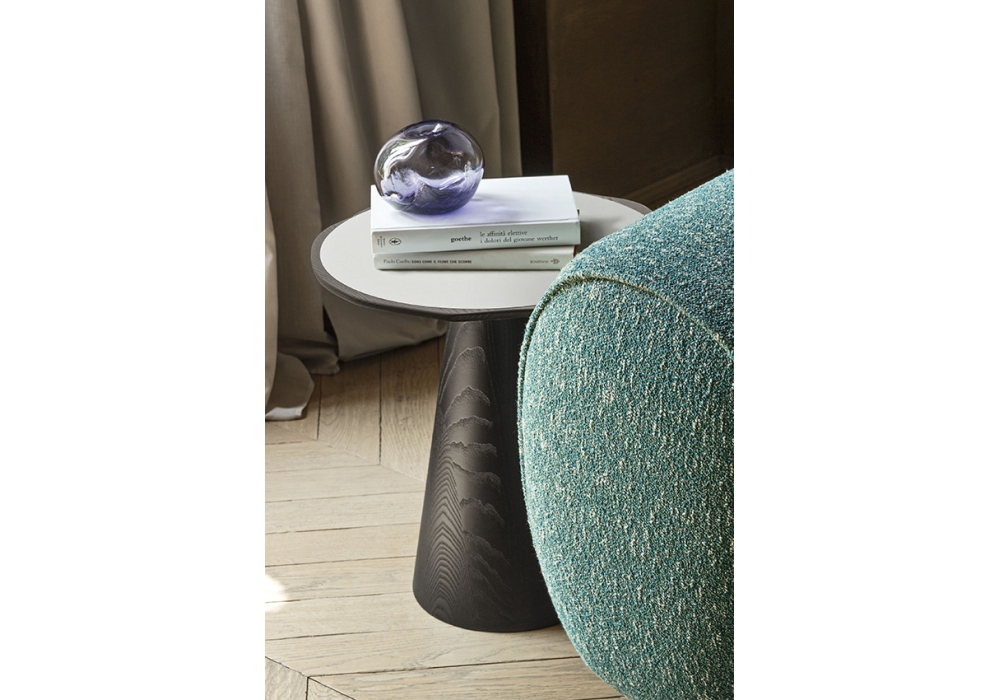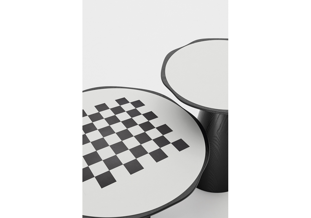 Scacco designed by Pier Luigi Frighetto for Pianca is a side table made of solid wood, it evokes the shapes of a gaming piece. The conical base supports a top with a wavy profile which houses a recessed, lacquered top in contrasting materials and colors with the structure. In the lower part of the top, a groove facilitates the grip of the table, which can be easily moved around the room for new configurations. Available in two different dimensions.