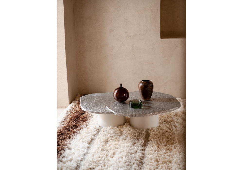 Brut designed by Roberto Sironi for Tacchini is a coffee table with base made of light concrete, top in cast aluminium.