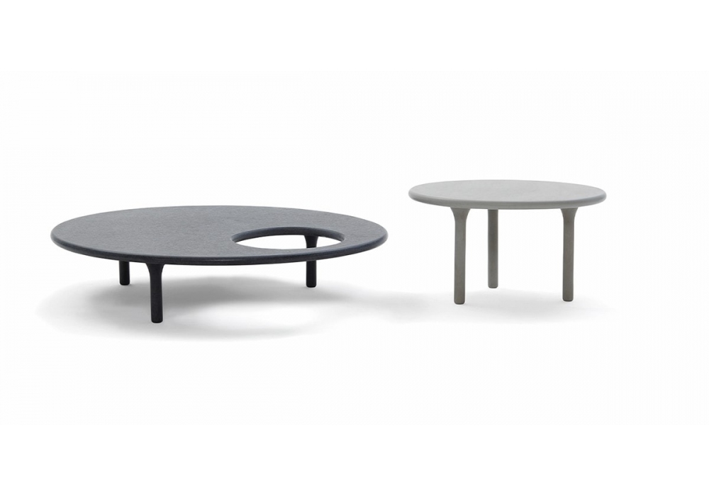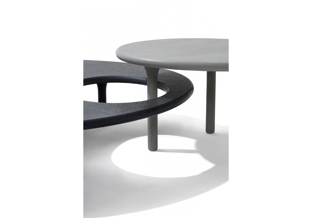 Honorè designed by Elisa Ossino for DePadova is a coffee table entirely structured in gray quartzite or absolute black Zimbabwe granite treated with water-repellent products. Honorè is available in different models and finishes.