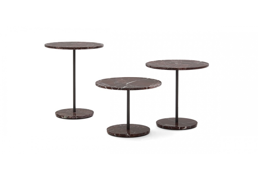 Talos designed by Keiji Takeuchi for DePadova is a coffee table with base and circular top in marble and structure and vertical rod in anodic brown painted steel. Talos is available in different sizes and marble finishes.