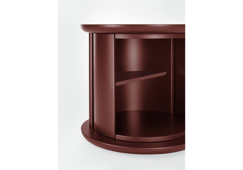 Hide&Seek Mini designed by Pietro Russo for Gallotti&Radice is a coffee table with structure, rotating half-cylinder and shelf in glossy or opaque lacquered wood. Available colours: “Rosso Persia”, “Grigio Londra”, “Nero Giza”, “Bianco Camargue”, “Verde Provenza”, “Blu Pacifico”, “Bordeaux Etruria”, “Rosa Jaipur” or “Sabbia del Nilo”. Also suitable as bedside table for the bedroom.