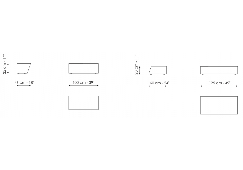 | Dimensions | • 100 x 46 x H 35 cm; • 125 x 60 x H 28 cm |