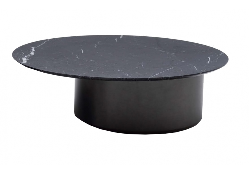 Imae designed by Setsu & Shinobu Ito for Désirée is a coffee table with MDF wooden base, with cement ballast, lacquered with a metal effect, matching the structure. Marble top in different finishes.