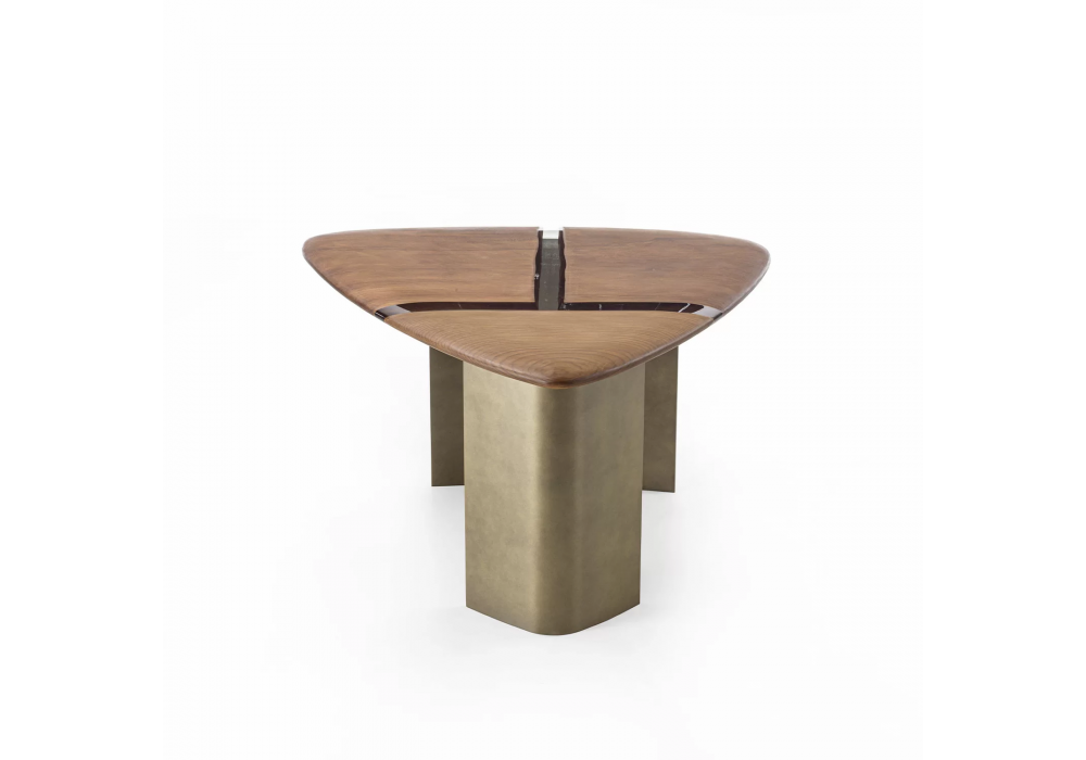 Kauri Delta designed by Authentic Design for Riva 1920 is a coffee table made with Kauri wood top with resin inserts and iron base. Available in different finishes and dimensions.