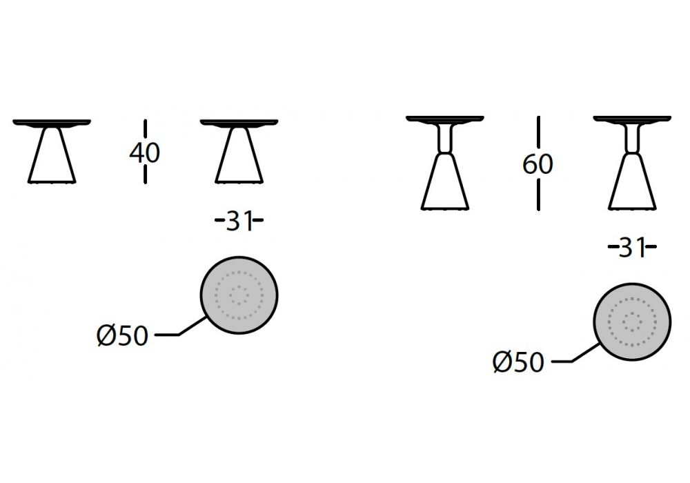 | Dimensions | • Ø 50 x H 40 cm; • Ø 50 x H 60 cm |