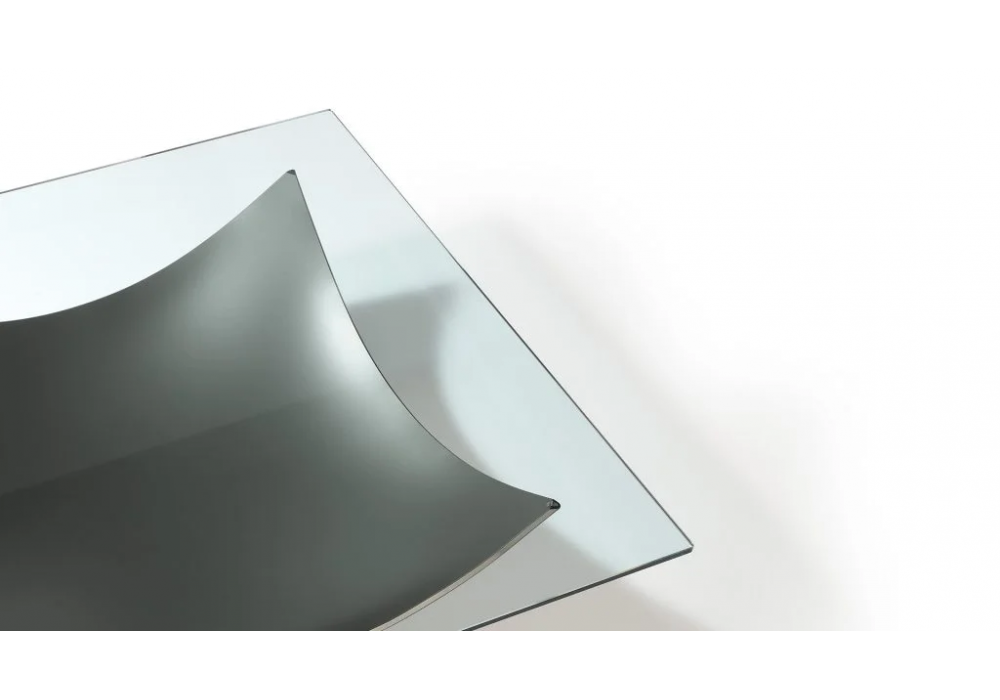 Vela 40 designed by Reflex Angelo is a side table made with base in curved glass painted in bronze, brass, titanium or dark brass finishing and transparent glass top. Available in different finishes and dimensions.