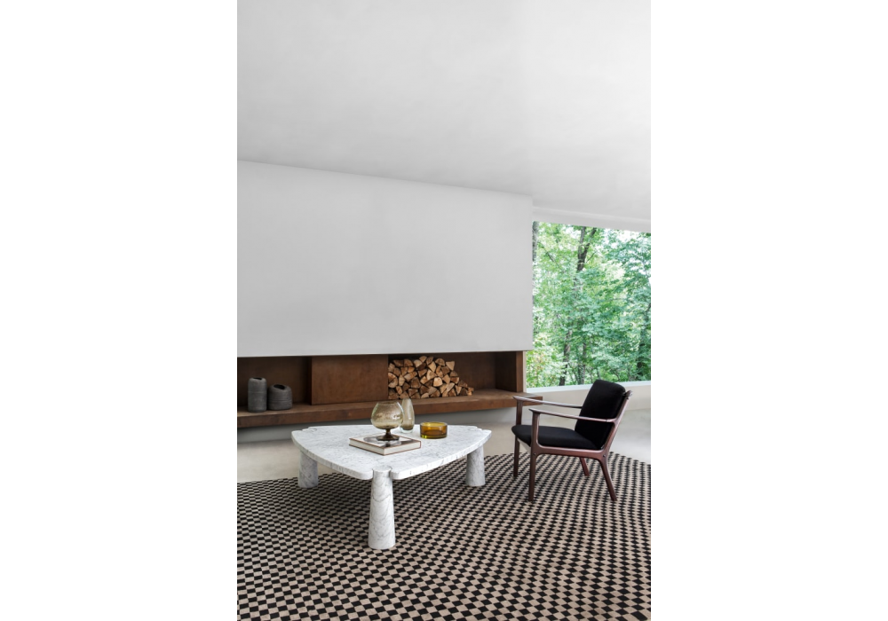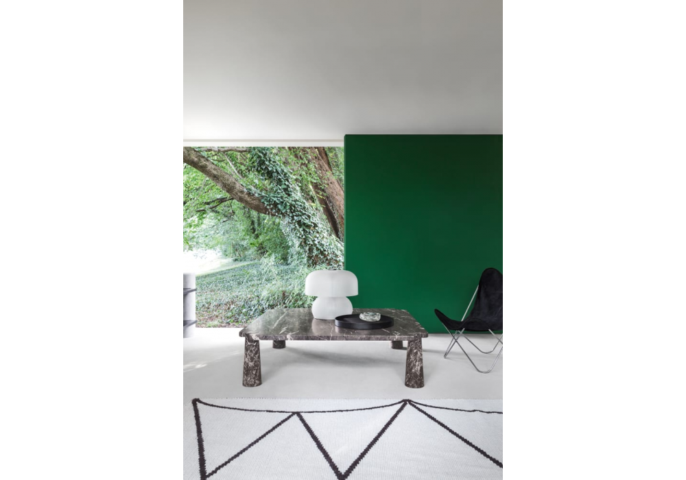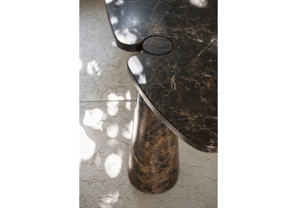 Eros designed by Angelo Mangiarotti for Agapecasa is a coffee table made of marble in different finishes. It is characterized by one or more conical supports embedded in the top depending on the shape. Available in different models.