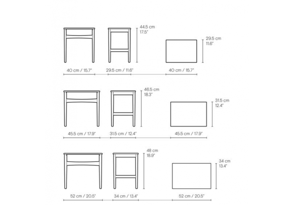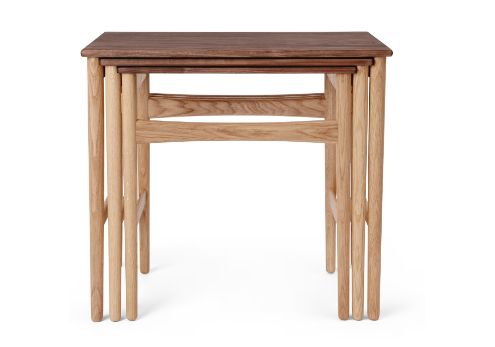 CH004 designed by Hans J. Wegner for Carl Hansen & Søn is a side table made of solid oak or walnut. It consists of 3 tables in different dimensions. The Oak/Walnut version is a combined version with the top in walnut and the base/structure in oak.