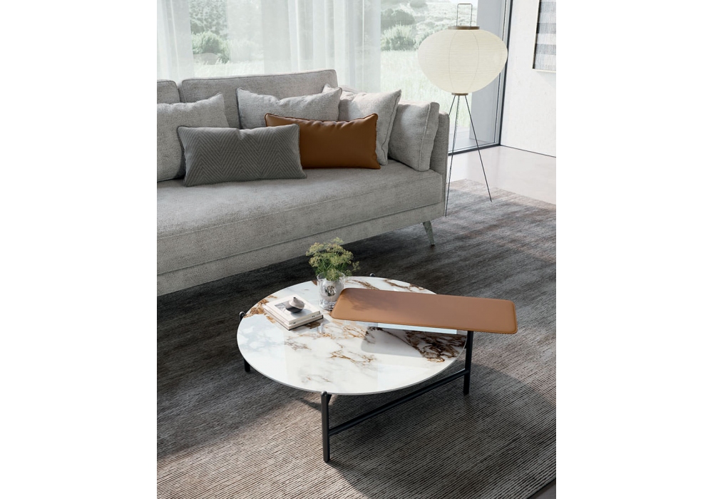 Supernova designed by Signorotto+Partners for Dall'Agnese is a coffee table made with a wooden or stoneware top coupled with a matt lacquered wooden panel. Metal base. Available in different finishes and dimensions.