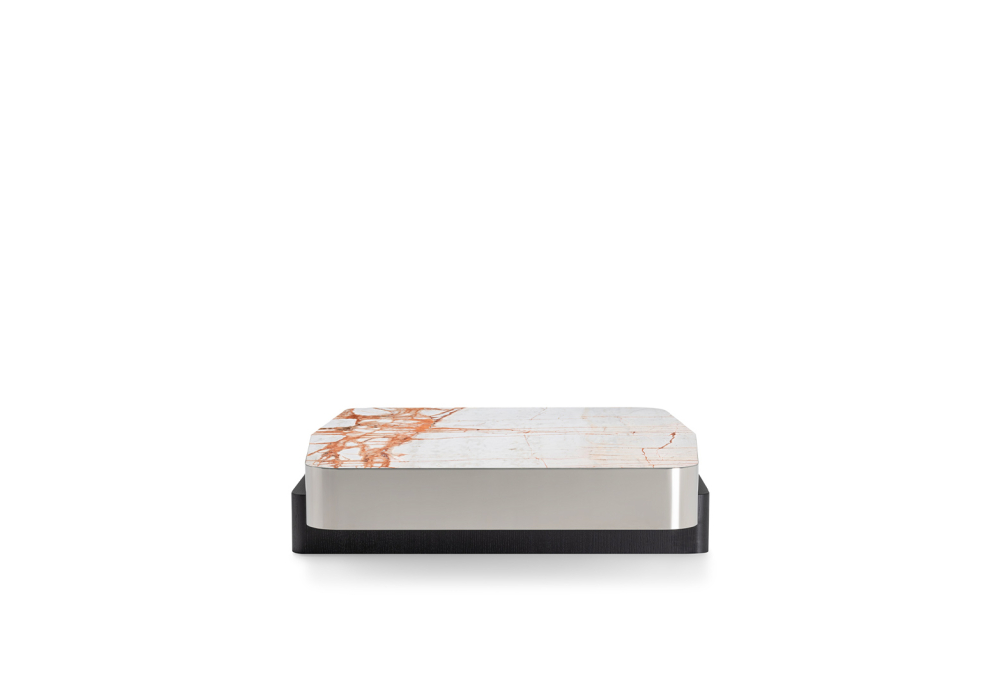Odile designed by Christophe Delcourt for Molteni&C is a coffee table with base in coffee or black oak. The hexagonal-shaped top, made of stone/marble, is seamlessly joined at each vertex. Shiny steel top frame. The graphic lines of Odile make it dynamic and versatile, capable of becoming an iconic centerpiece in the living room. Also available in different sizes.