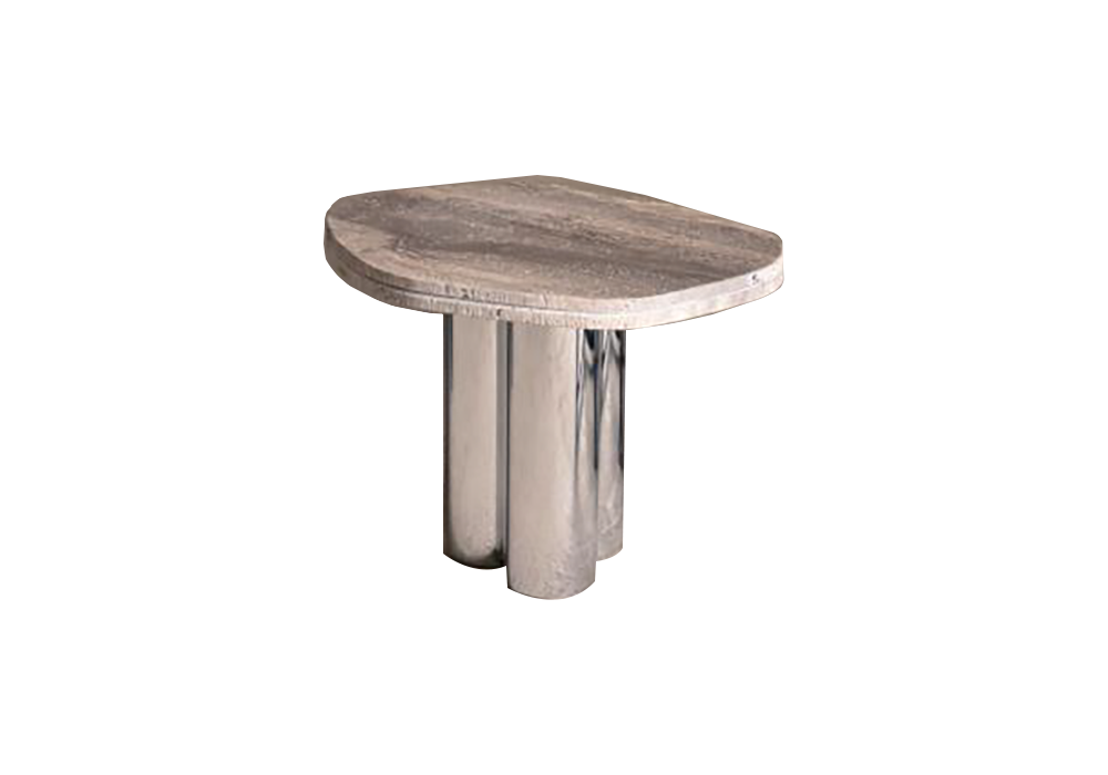 Palestro designed by Moitié Studio for Casamilano is a coffee table with a base made up of 3 cylinders made of metal with a shiny chrome finish. The top is in marble.