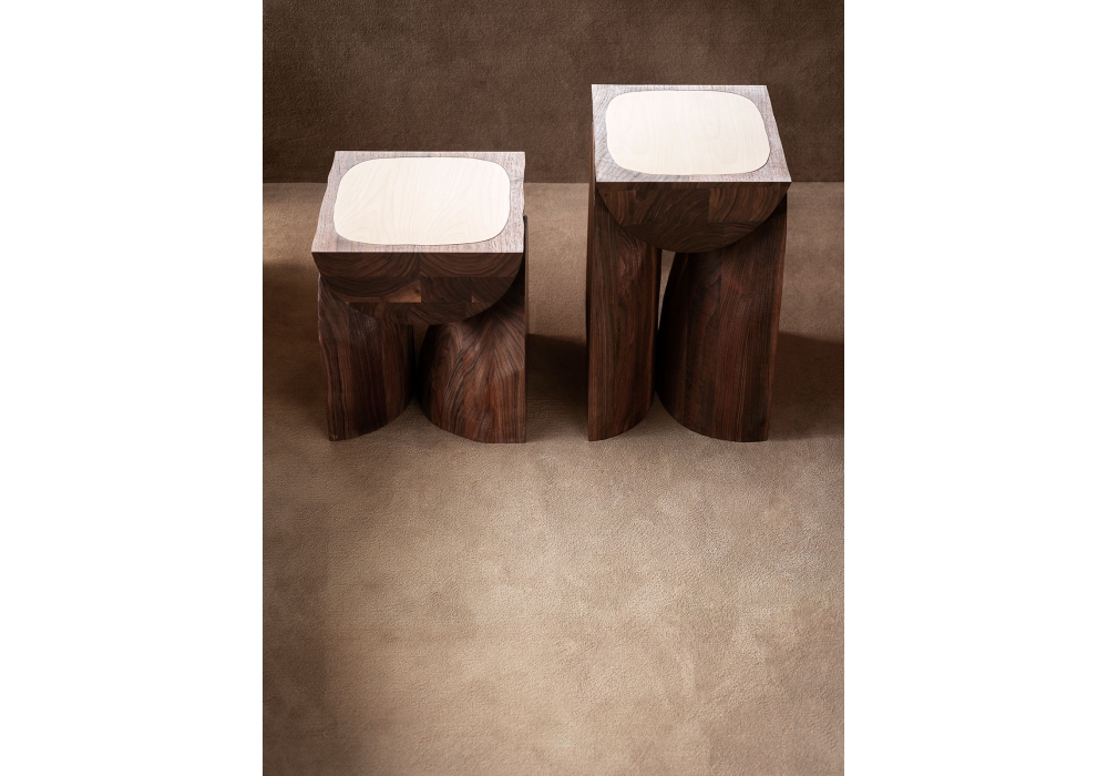 Bread designed by Faye Toogood for Tacchini is a side table made of walnut-stained ash wood and a maple wood top insert. Available in different dimensions.