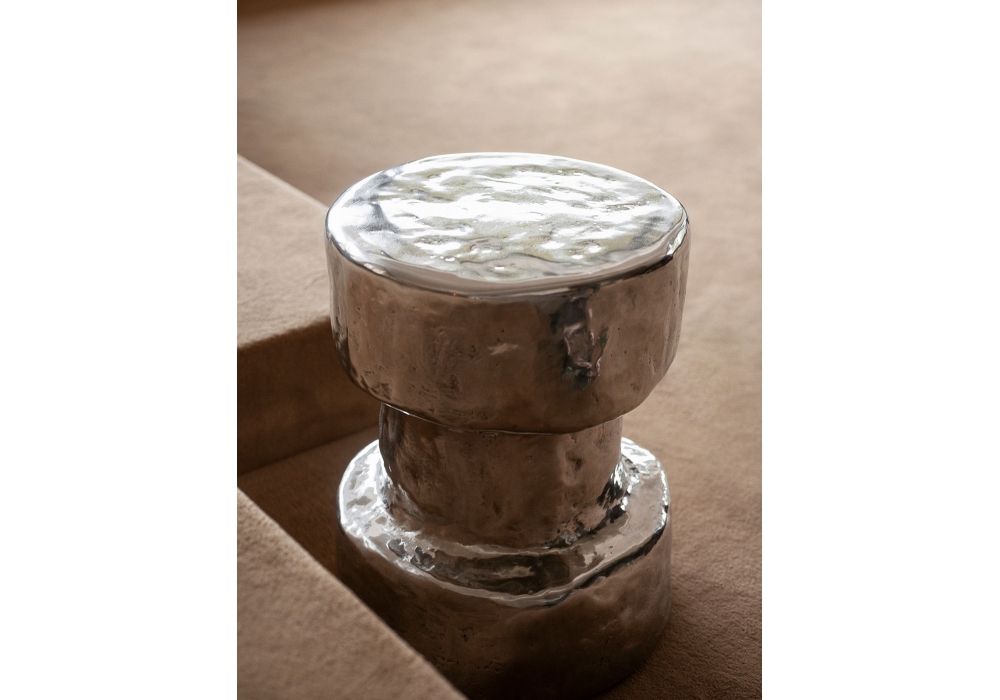 Torso designed by Roberto Sironi for Tacchini is a side table made of polished chromed aluminum.