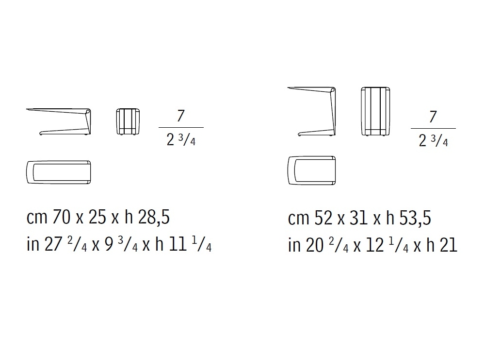| Dimensions | 70 x 25 x H 28,5 cm; 52 x 31 x H 53,5 cm. |