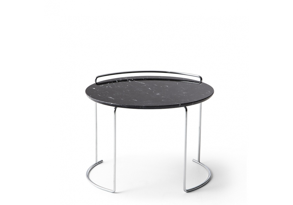 W61 Djuna designed by Kazuhide Takahama for Cassina is a coffee table made with a bent and chromed steel rod frame and a top painted with a glossy or matt mirror effect or in marble.