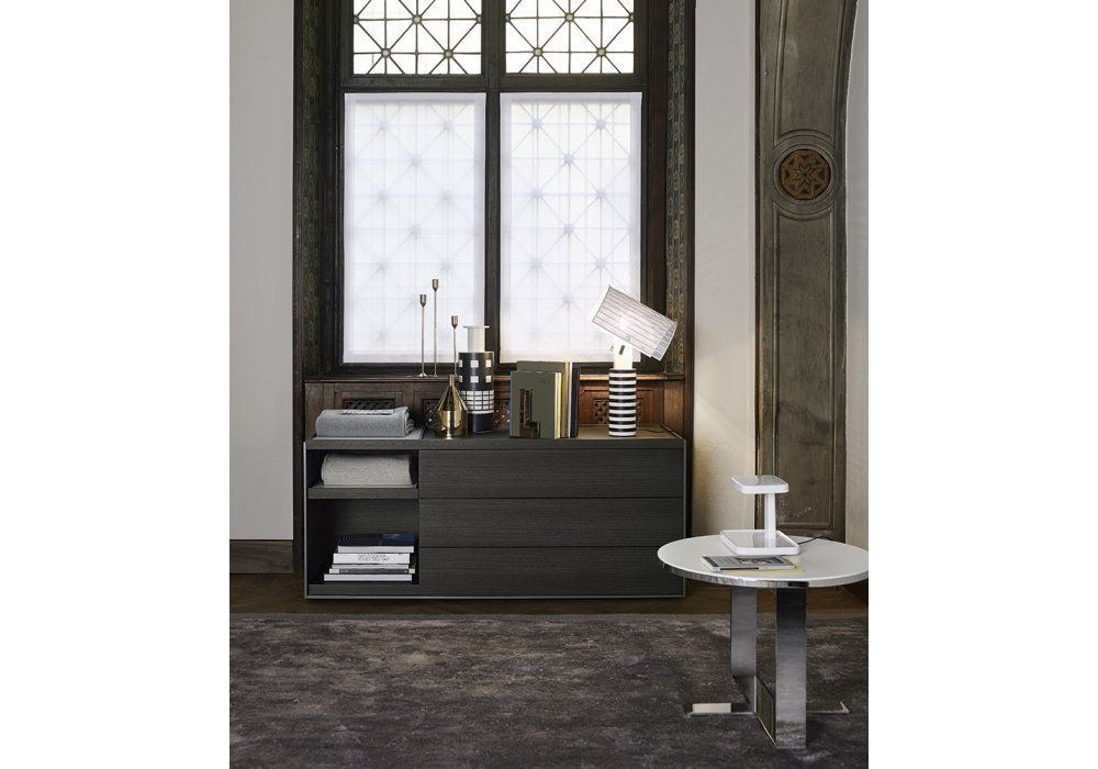 Eileen designed by Antonio Citterio for B&B Italia is a table with a rounded top (wood or lacquered or marble, as desired), and the profile of the base with its cross-shaped. They are the expression of refined aesthetics that combine well with other products.