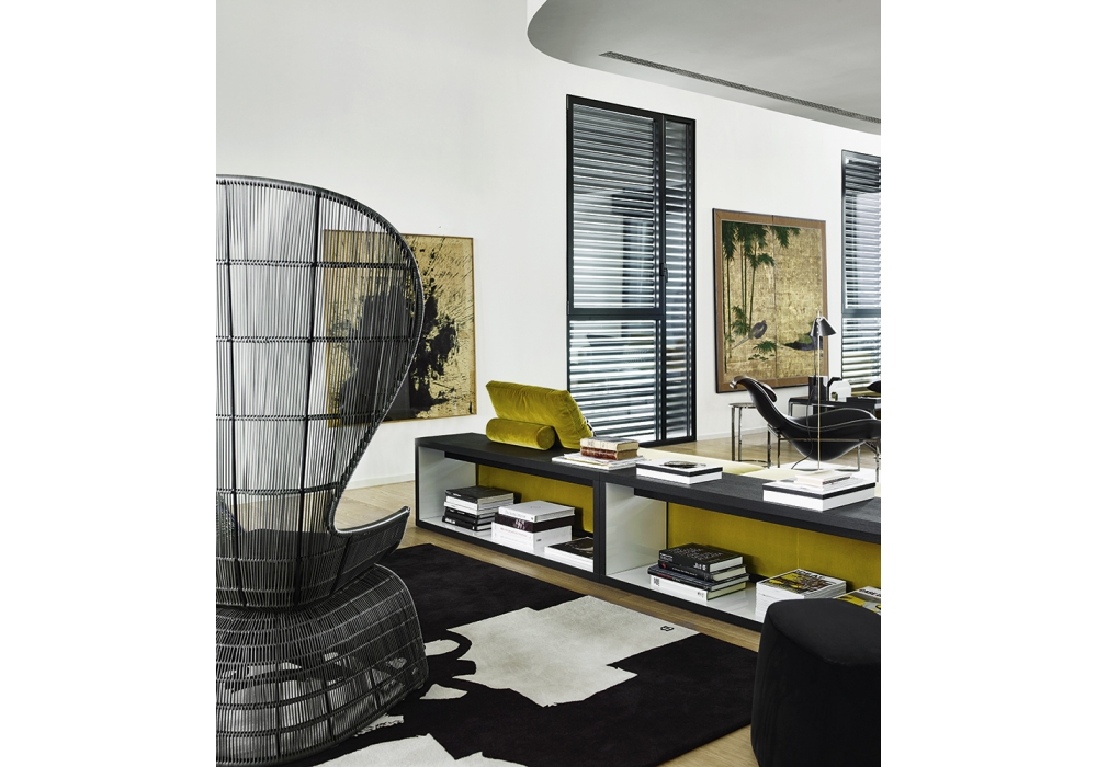 Frank '12 designed by Antonio Citterio for B&B Italia is a side table with a veneered oak structure with adjustable steel and plastic tips. Internal structure in glossy finish in different finishes.