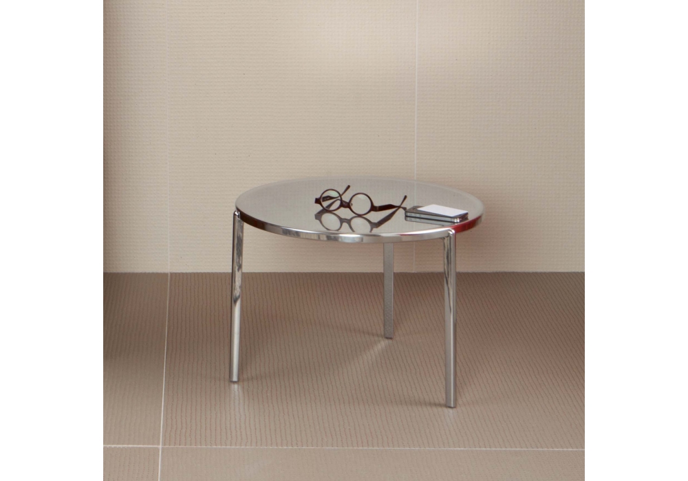 Tambour designed by Ronan & Erwan Bouroullec for Magis is a low table with polished aluminum die-cast structure and polished aluminum top.