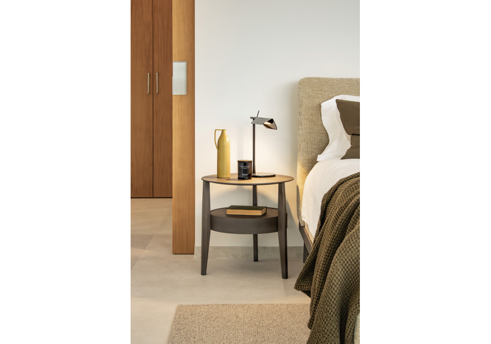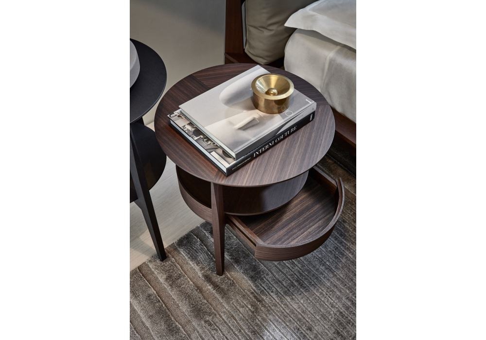 When designed by Rodolfo Dordoni for Molteni&C is a coffee table with drawer. Furnishing accessories in solid wood that can be integrated into the living area or sleeping area thanks to the design of the structure that incorporates the lines of the Wish bed and the Who chairs. The top of the tables is always in inlaid wood. Available in different finishes.