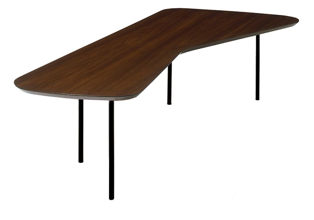 Alexander Girard designed by Alexander Girard for Knoll is a coffee table with a black painted metal frame and an oak or walnut top, with a 45° beveled edge. Available in two sizes.