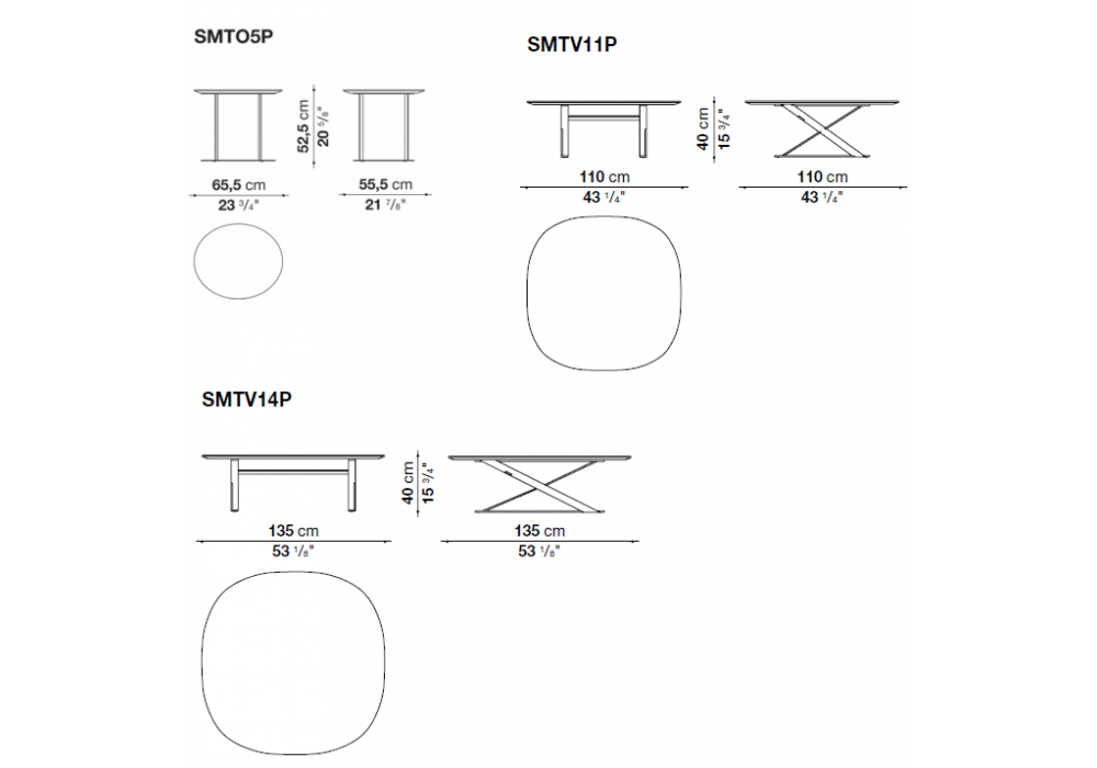 | Dimensions | 110 x 110 x H 40 cm; 135 x 135 x H 40 cm; 65,5 x 55.5 x H 52.5 cm. |