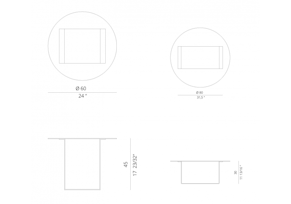 | Dimensions | Ø 60 x H 45 cm; Ø 80 x H 30 cm. |