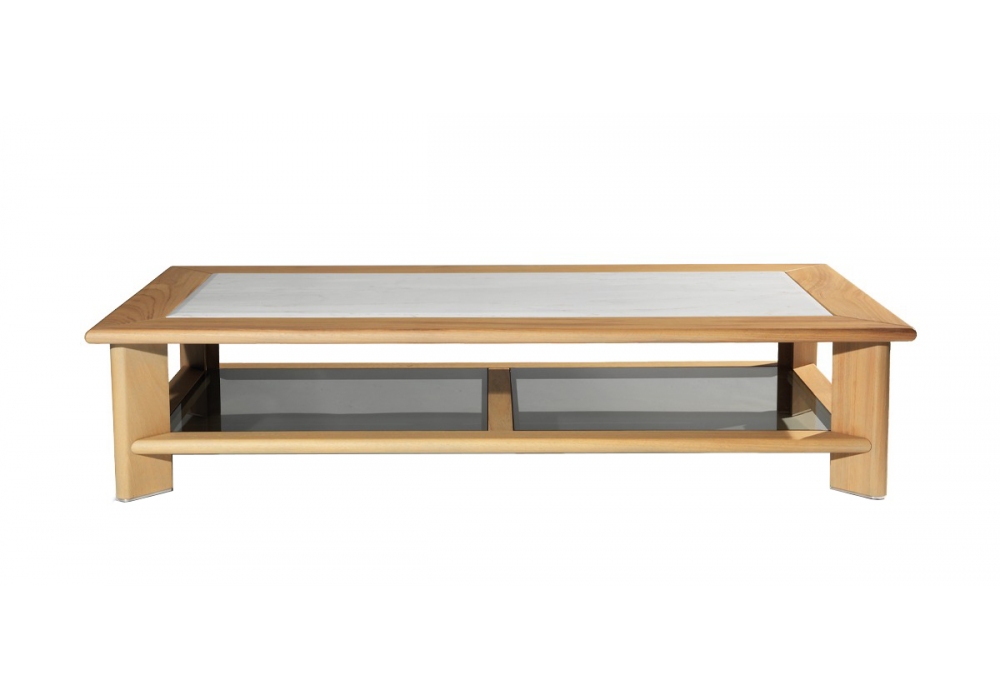 Galloway designed by Maurizio Manzoni Roberto Tapinassi for Visionnaire is a coffee table with quadrangular top in dove white marble and low shelf in smoked tempered glass and structure in solid Iroko wood. Galloway is available in different finishes.