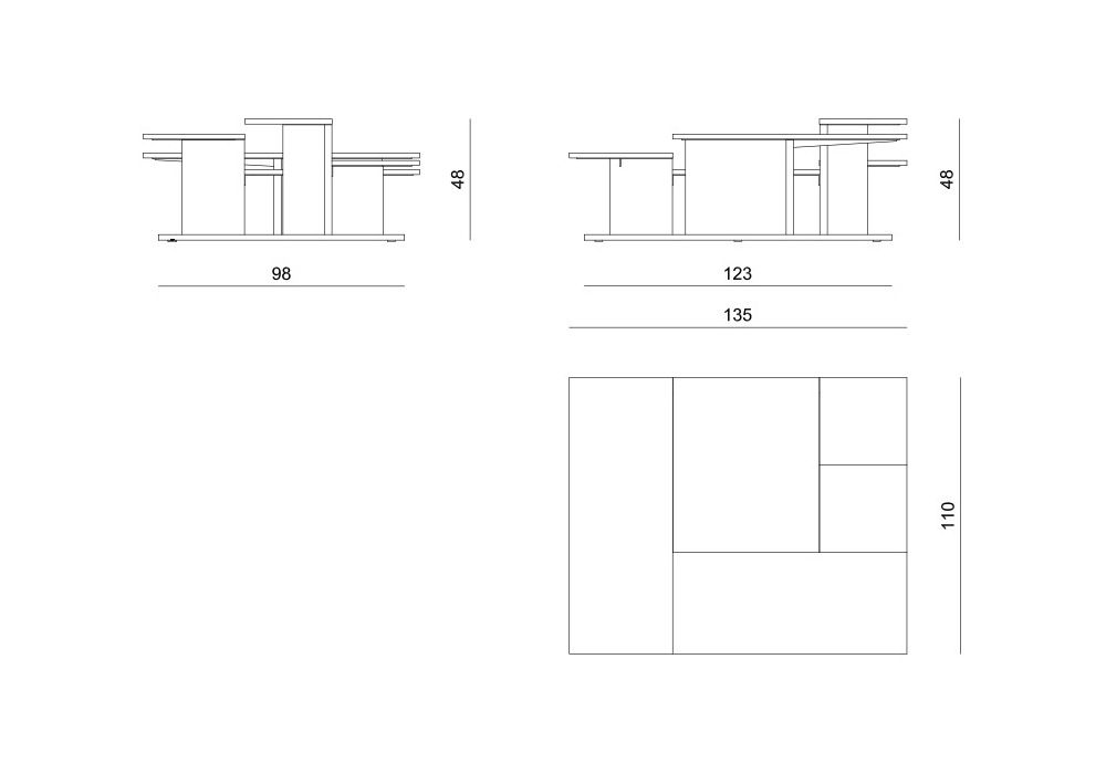 Building designed by Alessandro La Spada for Visionnaire is a coffee table with five quadrangular marble shelves at different heights. The main supporting structure is made of wood covered in supermirror stainless steel while the base is quadrangular in shape in satin metal. Building is available in different finishes.