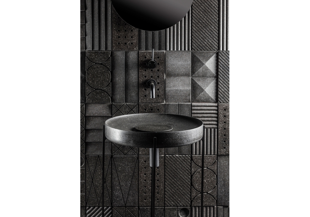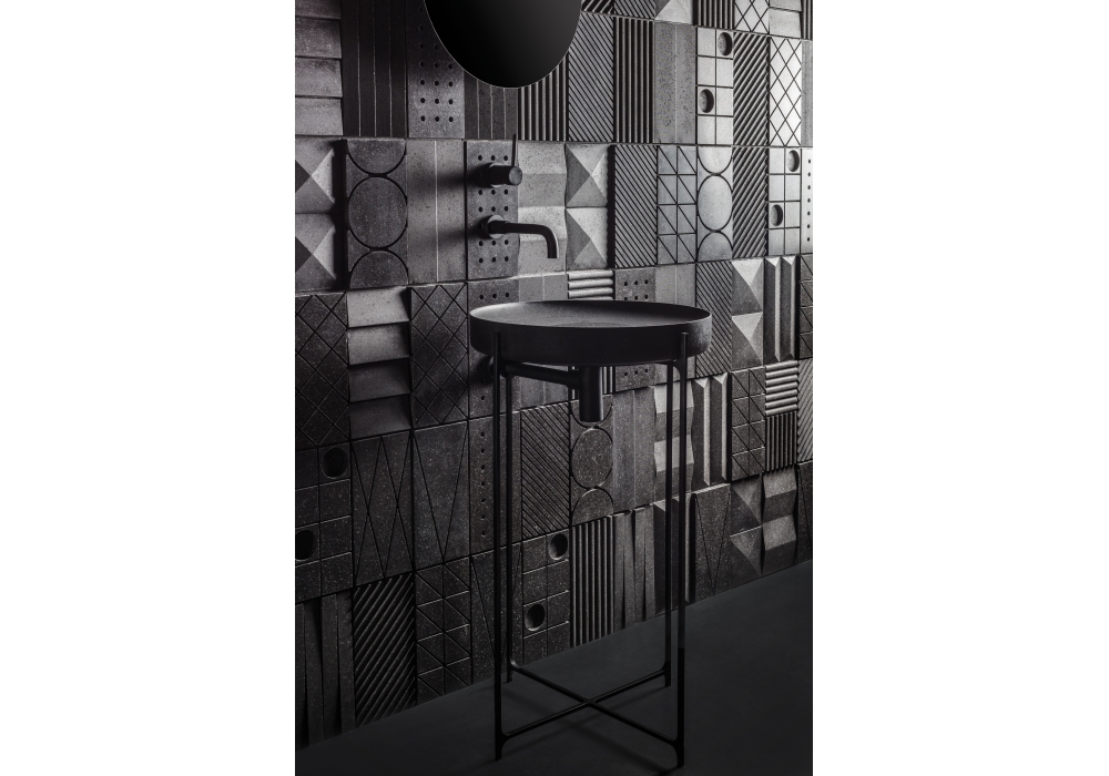 Etna designed by Martinelli Venezia Studio for Lithea is a column washbasin made of stone, available in different finishes. Available with or without mirror.