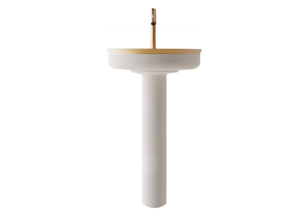Undici Inox designed by Benedini Associati is a column washbasin in stainless steel or brass made by sheet metal turning. It is not intended for the tap; a free drain. Exterior painted in matt white or matt black. The column always has the same external finish as the washbasin and is designed for wall drain or floor drain.