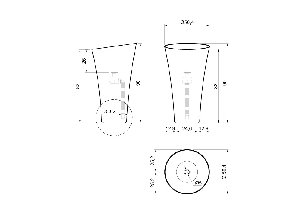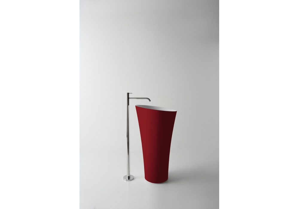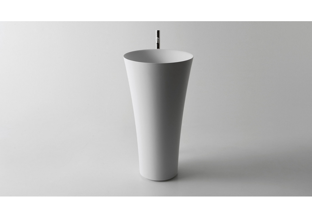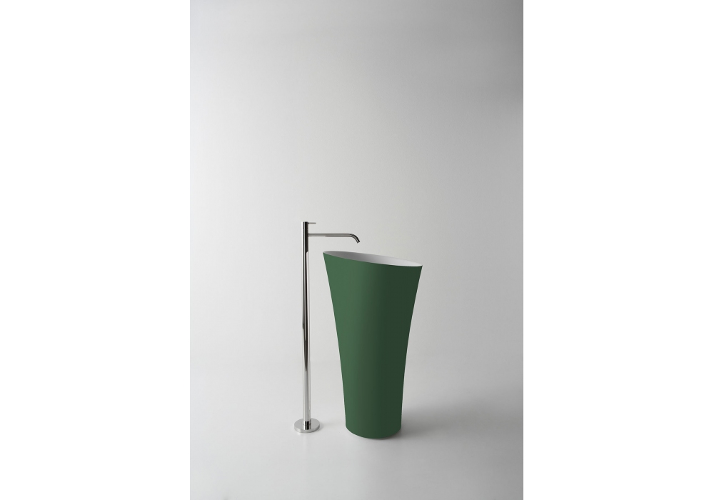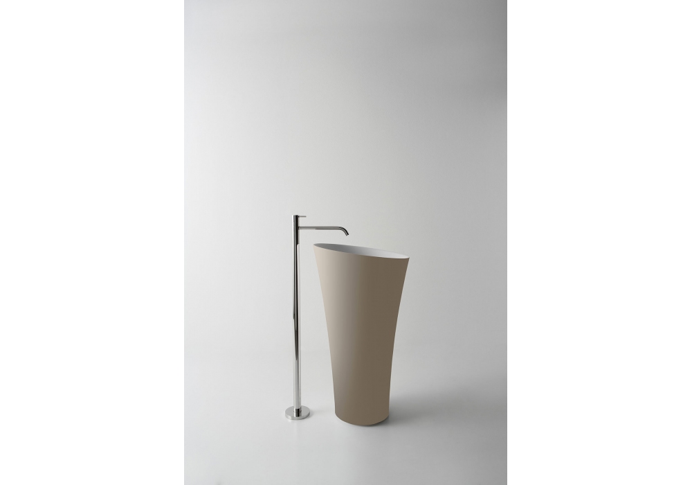 Tuba designed by Carlo Colombo for Antonio Lupi is a floor-standing washbasin in Flumood or stone with floor drain, complete with open drain, siphon and flexible hose.