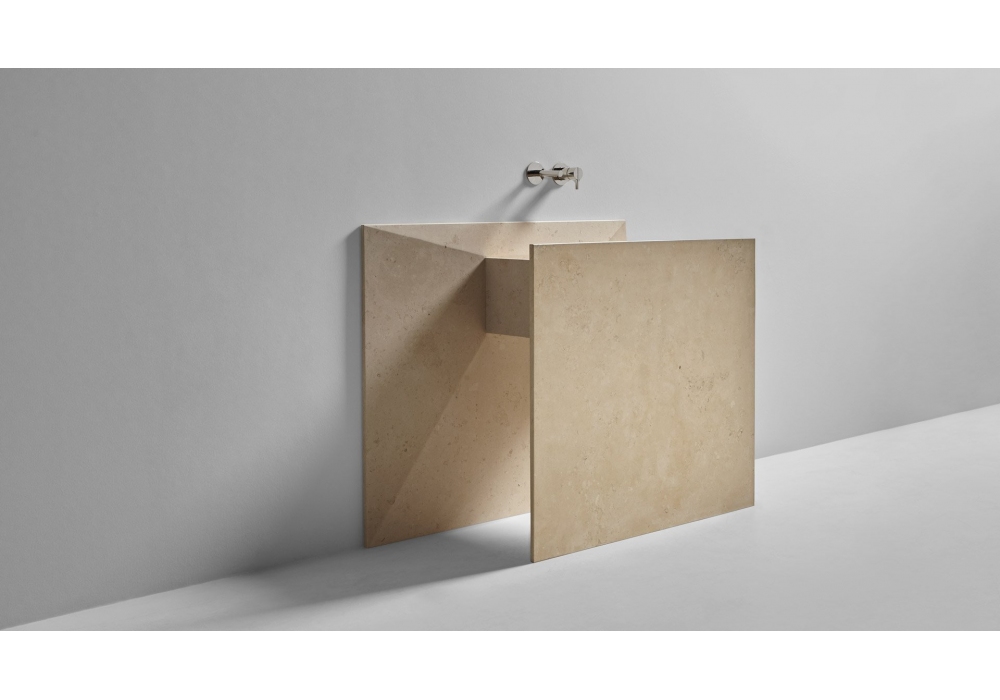 Skyline designed by Antonio Iraci for Antonio Lupi is a wall-mounted stone sink. It comes complete with a drain with an open drain.