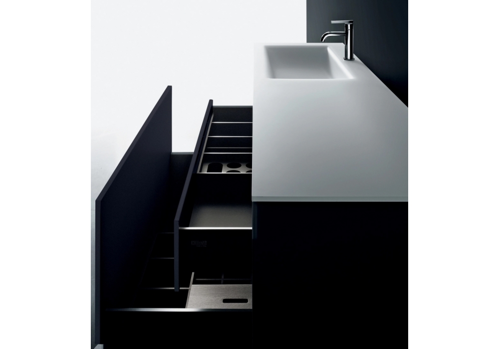 Soho designed by Piero Lissoni for Boffi is a modular bathroom system with removable fronts. The tops are available in glass, Cristalplant®, stone, marble, granite and composite stone. The glass top can be made with integrated thermo-formed washbasin with an exclusive design.