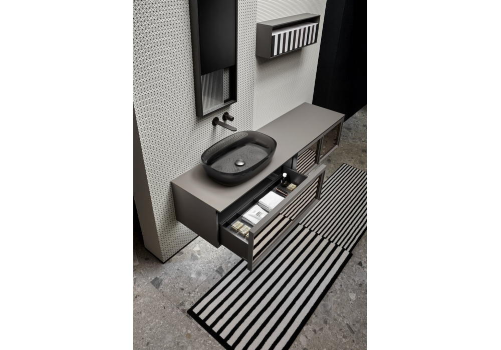 Bemade designed by Carlo Colombo for Antonio Lupi is a system that combines formal rigor and contemporary elegance. Characterized by a bold and distinctive frame, it expresses balance, proportion, and style through interplays of solids and voids, color combinations, and light reflections. An evolution of the Bespoke collection, it offers maximum compositional flexibility and new customization options, thanks to refined material and color finishes, from aluminum to glass and wood fronts. A collection capable of interacting with the bathroom and extending harmoniously into the living room as well.