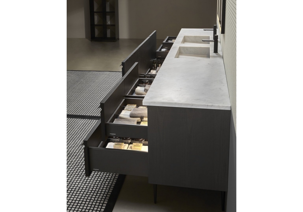 Borderline designed by Carlo Colombo for Antonio Lupi is a tailored collection that combines refined design and excellent craftsmanship. Each piece expresses a universe of values and sensations, offering unique craftsmanship and the ability to customize dimensions, colors, and finishes, transforming the furniture into an experience of continuity and timeless beauty.