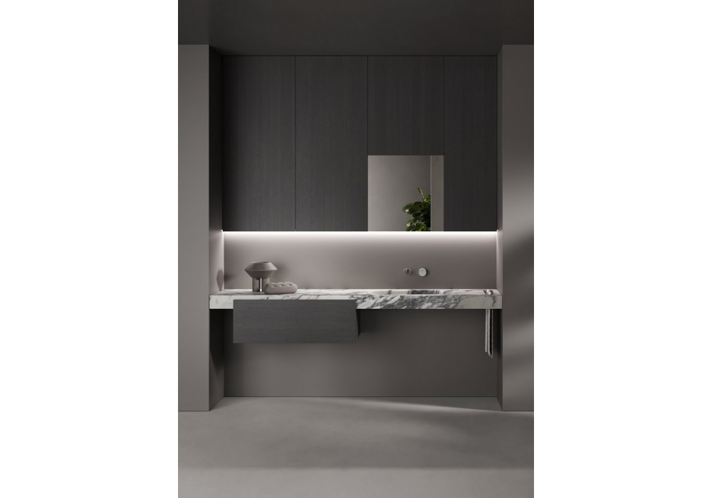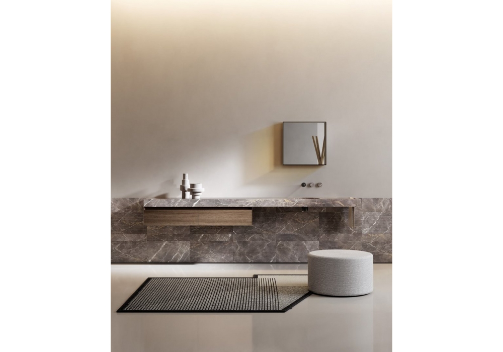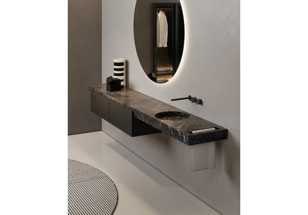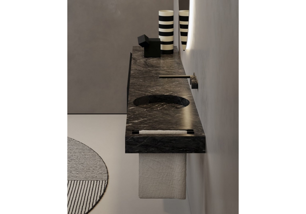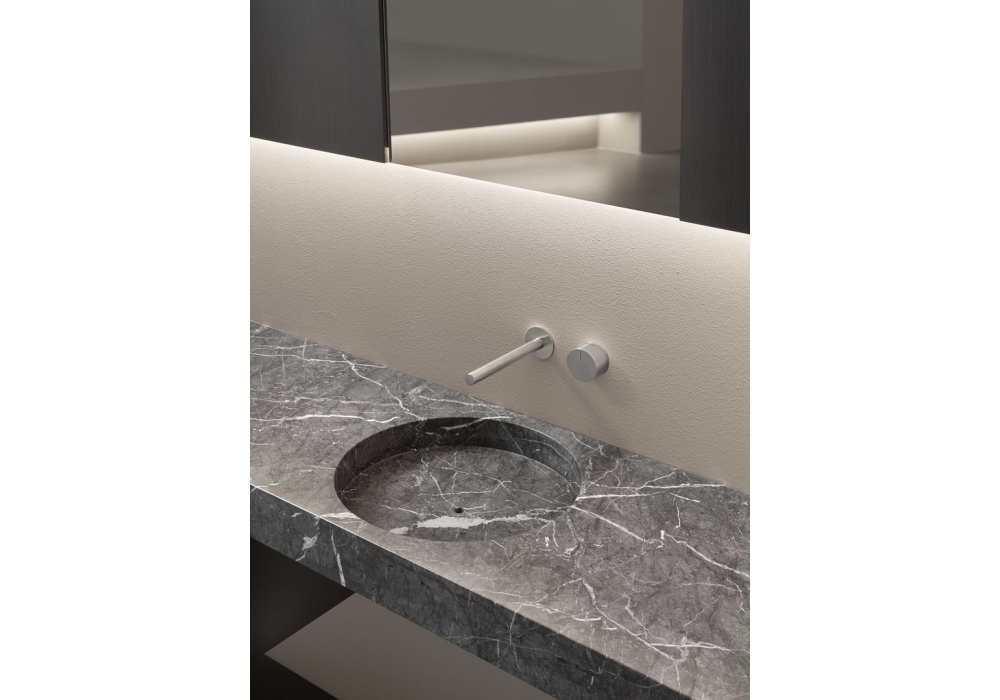 Fortepiano designed by Antonio Lupi is a system of solid marble countertops that combines material strength and formal purity. This project transforms stone into a seamless surface, sculpted with integrated round, oval, square, or rectangular sinks, where water seems to shape the material itself. Fortepiano can be installed as a shelf or integrated with Antonio Lupi cabinets, creating a refined dialogue between textures and colors. Simple, powerful, elegant: a new way to interpret marble as the undisputed protagonist of the bathroom space.