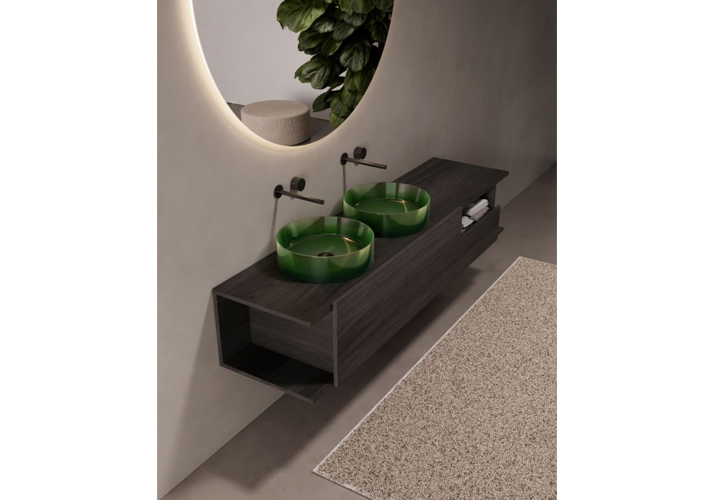 Nemesis designed by Antonio Lupi is a modular system of bathroom cabinets and furniture. Compact and lightweight, it's designed for a young audience interested in contemporary design. Its flexibility allows for customization in length, height, colors, and finishes, allowing for elegant and functional compositions for any space. Made entirely of SMART_HPL, a material resistant to water, heat, and scratches, Nemesis combines aesthetics, practicality, and ease of assembly, offering a designer bathroom at a fair price.
