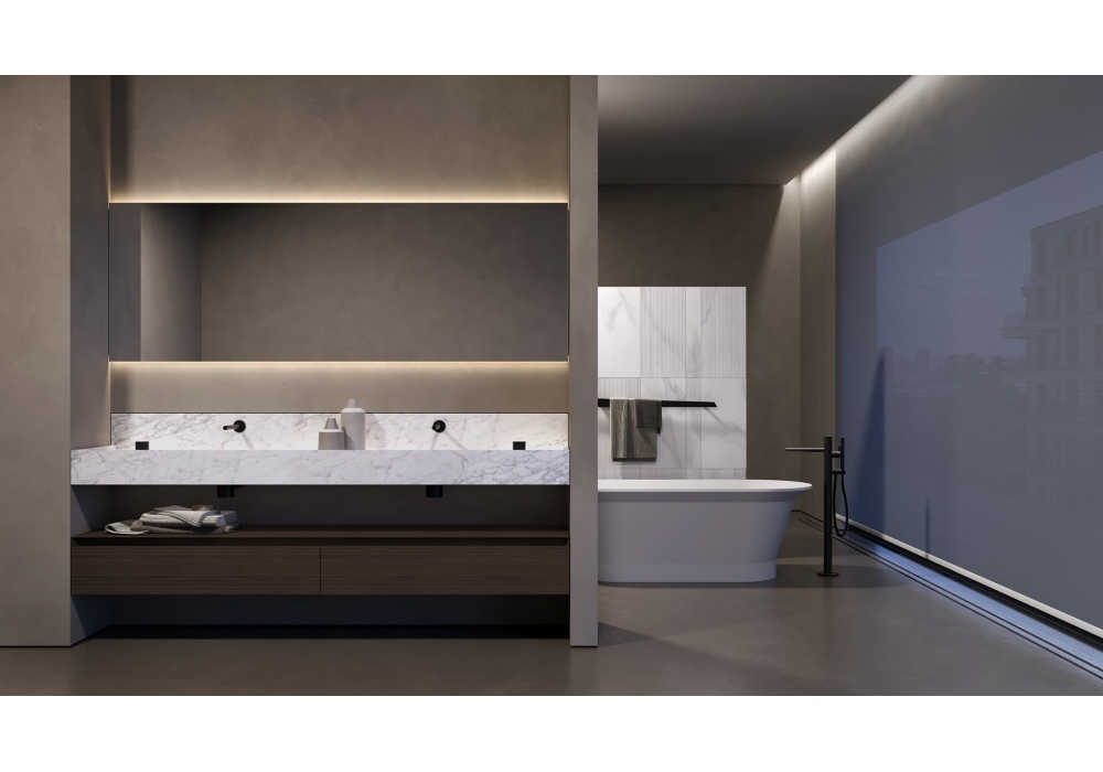 Street_Light designed by Antonio Lupi is a washbasin system with a minimalist, contemporary design that combines elegance, lightness, and functionality. Derived from the Street project, it retains its monolithic character and formal purity, but with a slimmer profile that accentuates the sensation of suspension. Custom-made and available in a wide range of marbles and natural stones, Street_Light redefines the washbasin area as an architectural and compositional element, where material and form interact to create unique spaces with a strong identity.
