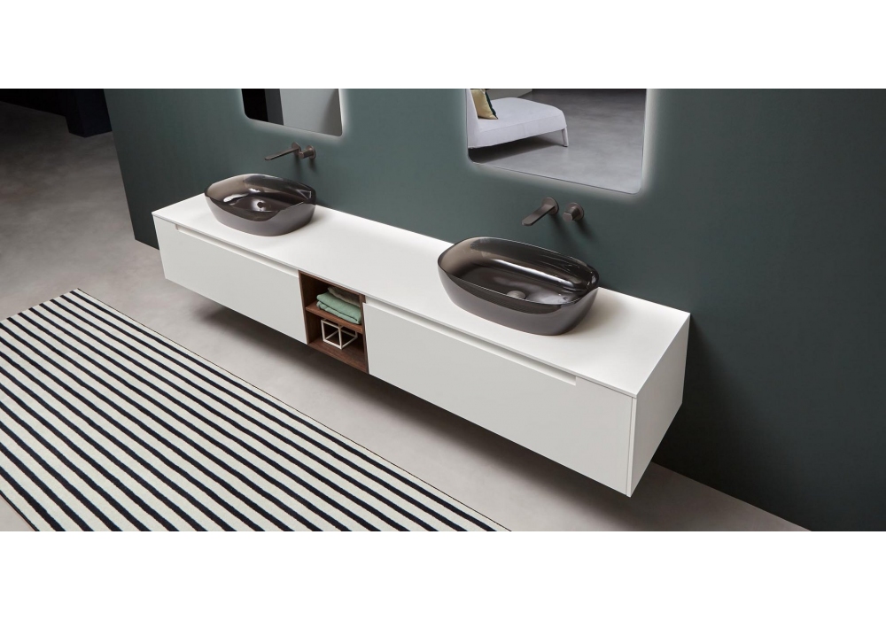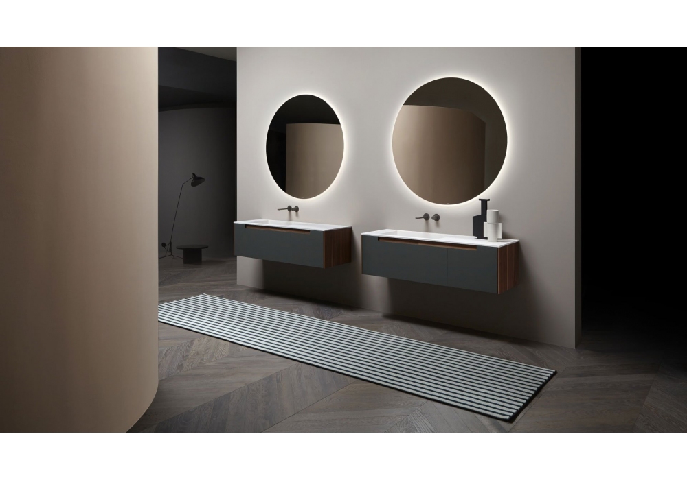 Ombra designed by Antonio Lupi is a furniture system with a pure and timeless design, featuring a simple geometric layout and a rigorous structure enhanced by high-quality finishes. The integrated handle in the door becomes the hallmark of the project. Crafted with a laminate core and a customizable outer "skin" in wood, lacquer, or other materials, it offers endless combinations of textures, colors, and configurations, including open compartments, drawers, and storage units. The continuous, precisely milled groove emphasizes the refinement of the workmanship and gives the piece an elegant and contemporary look.